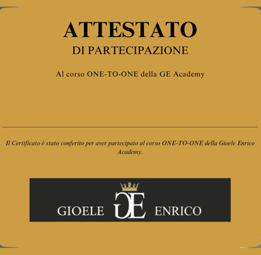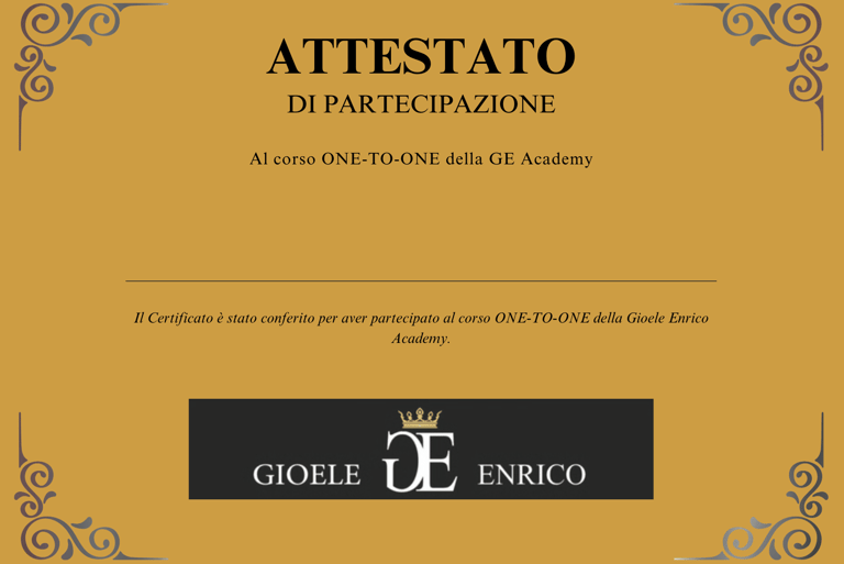 Ti verrà rilasciato l'Attestato Gold di formazione per aver partecipato al corso One-To-One.